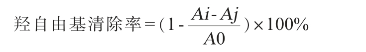 式中:A0为以纯水代替样品的吸光度值;Ai为样品溶液的吸光度值;Aj为不含样品和过氧化氢的吸光度值。