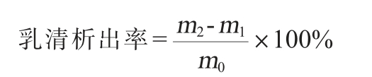 乳清析出率测定:根据陈秉彦等[17]测定并作适当调整。取30 g样品于离心管,称其质量,于6 400 r/min条件下离心10 min,弃去上清液,称离心管和样品质量,乳清析出率计算公式如下: