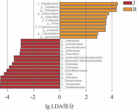 图4 不同工艺中高温大曲差异真菌线性判别分析效应大小分析结果