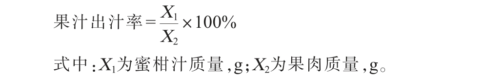 果汁出汁率为蜜柑果汁量与所占水果总量的比例,通常以百分比表示。果汁出汁率计算公式如下: