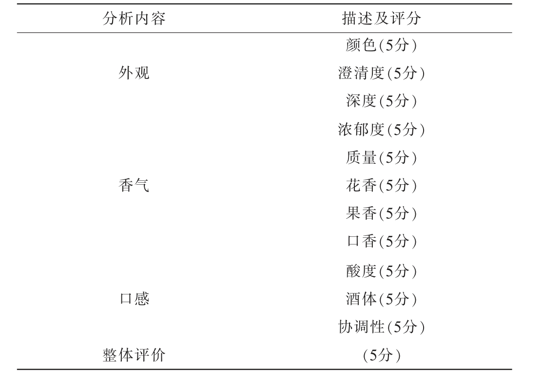 表1 桃红葡萄酒感官评分标准