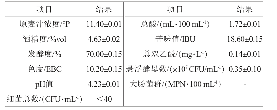 表6 蒲公英精酿啤酒理化及微生物指标测定结果