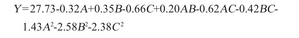 采用Design Expert 10.0.3软件对表3数据进行回归分析,得到多元二次回归方程: