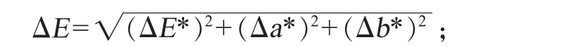 颜色参数的测定参照薛倩倩等[27]的方法并稍作改动,用反射模式测定样品的L*值、a值*、b*值。L*值(明亮度)、a*值(红绿度)、b*值(黄蓝度)。色差由ΔE值表示,其计算公式如下: