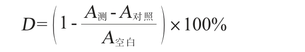 式中:D为ABTS+自由基清除率,%;A测为待测溶液与ABTS溶液混合液的吸光度值;A对照为ABTS溶液与磷酸缓冲盐溶液(phosphate buffer saline,PBS)液混合液的吸光度值;A空白为ABTS溶液与70%酸化乙醇溶液混合液的吸光度值。