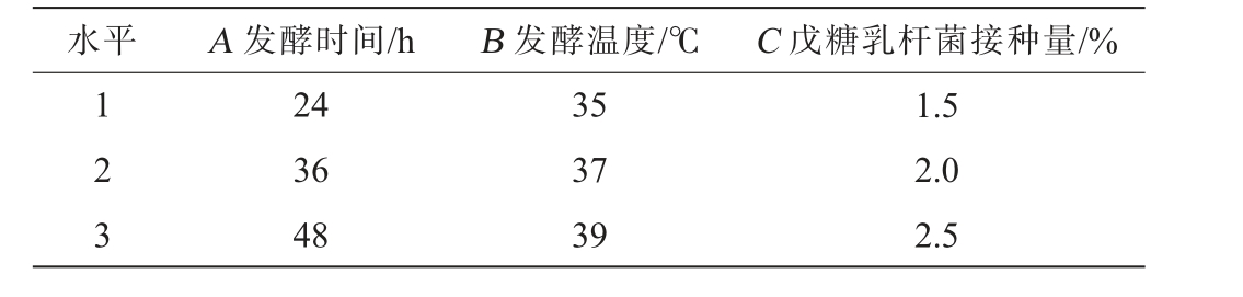 表2 戊糖乳杆菌发酵条件优化正交试验因素与水平