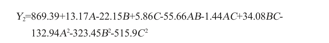 利用Design-Expert 13.0软件分析表3结果,分别得到以酵母菌活菌数(Y1)和SOD活性(Y2)为响应值的多元二次回归方程如下: