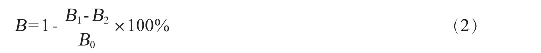 式中:B为ABTS自由基清除率,%;B0为ABTS储备液的吸光度值;B1为样品+ABTS储备液的吸光度值;B2为无水乙醇+样品溶液的吸光度值。