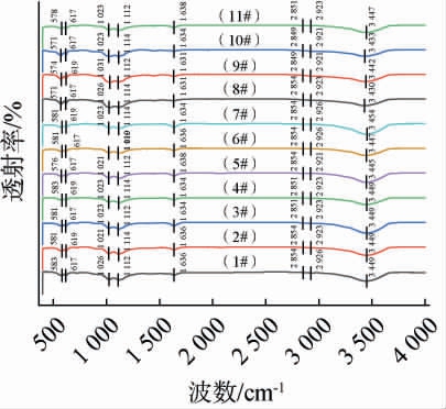 Fig.2 Fourier transform infrared spectra of 11 activated carbon