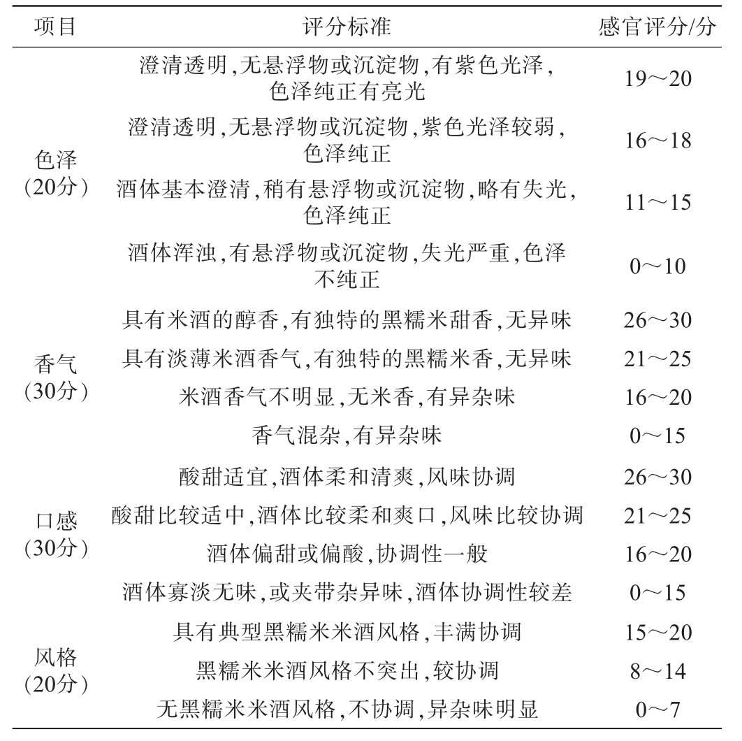 表2 富硒黑糯米酒感官评价标准