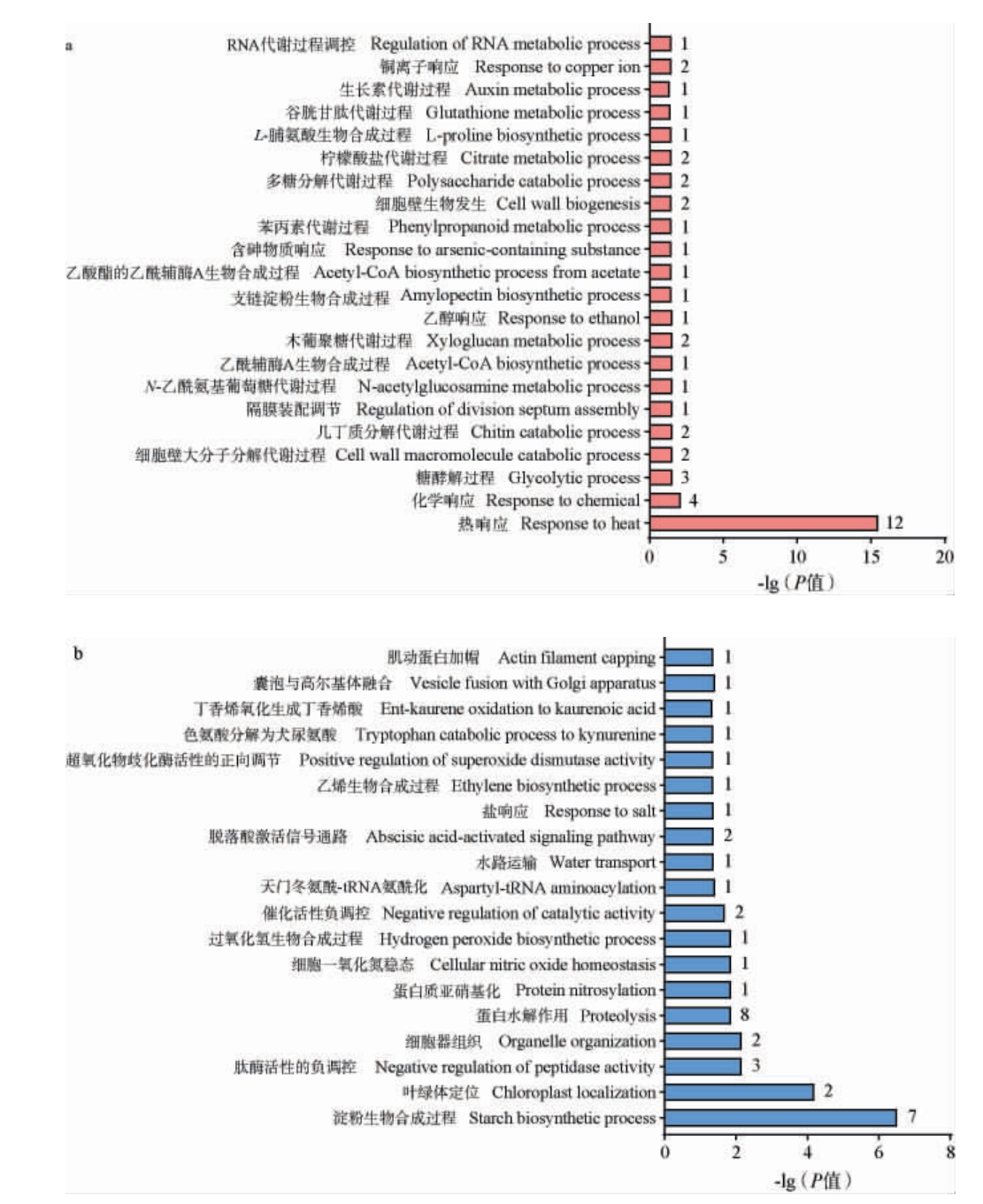 图6 稻米PXY上调(a)和下调(b)蛋白质的基因本体论富集分析结果