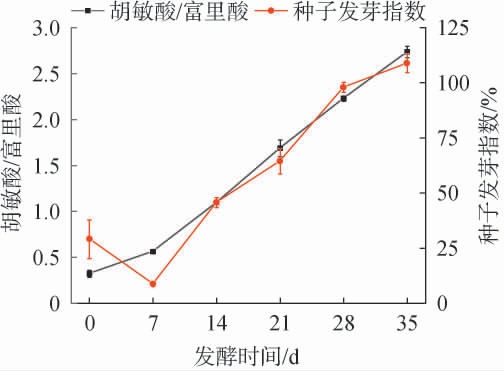 图7 超高温好氧堆肥过程中种子发芽指数和胡敏酸与富里酸比值的变化