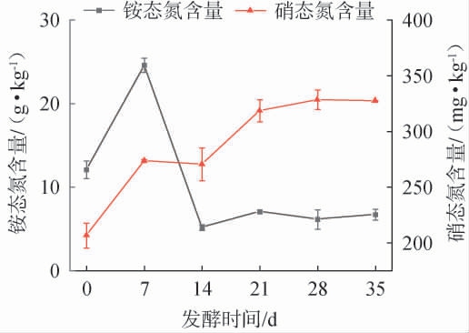 图5 超高温好氧堆肥过程中铵态氮和硝态氮含量的变化
