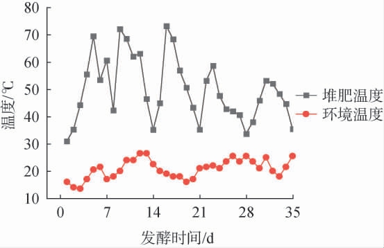 图1 超高温好氧堆肥过程中环境及堆肥温度的变化