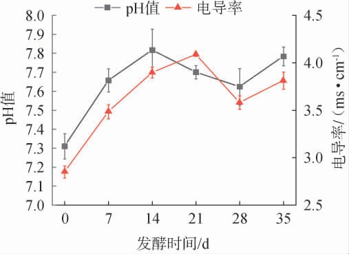 图2 超高温好氧堆肥过程中pH值和电导率的变化