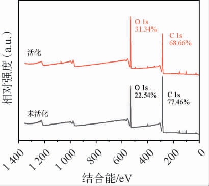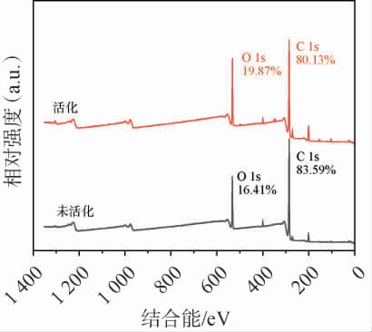 图4 活化前后酒糟的X射线光电子能谱全谱图