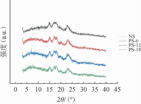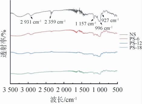 NS:天然莲子淀粉;PS-6、PS-12、PS-18:酶解6 h、12 h、18 h的多孔莲子淀粉。下同。