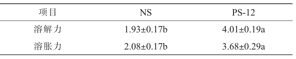 项目 NS PS-12溶解力溶胀力1.93±0.17b 2.08±0.17b 4.01±0.19a 3.68±0.29a