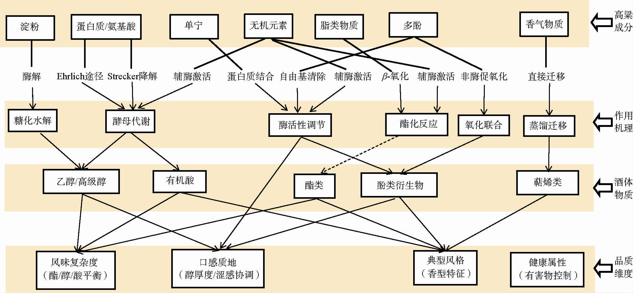 图1 高粱化学成分对白酒品质的影响关系