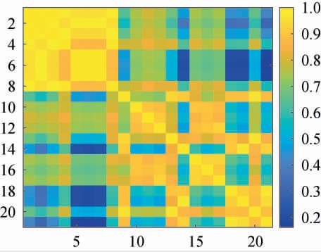 图5 小区域之间的相关系数热图