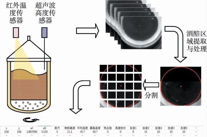 温度测量由红外热成像仪进行,所得数据为多维时间序列数据,每2 s采集一次,每次数据采集形成的序列数据具有7个变量,包括酒醅灰度图、酒醅温度矩阵、红外热成像仪拍摄角度、最高温度、平均温度、温度积分和热点数。酒醅高度数据每2 s采集一次,并将测量的数据存入序列数据,构成具有8个变量的序列数据。