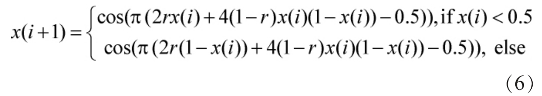 初始种群对计算结果有很大的影响,对其增加Tent-Logistic-Cosine混沌映射生成海洋捕食者算法的初始种群,增强初始种群的遍历性[21],其公式如下: