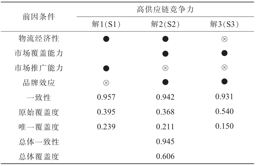 前因条件解1(S1)高供应链竞争力解2(S2) 解3(S3)物流经济性市场覆盖能力市场推广能力品牌效应一致性原始覆盖度唯一覆盖度总体一致性总体覆盖度●● ⊗●●⊗●⊗●⊗●0.957 0.395 0.239 0.942 0.368 0.211 0.945 0.606 0.931 0.540 0.150