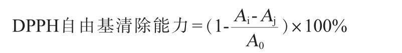 式中:A0为以1 mL乙醇代替样品液的对照组吸光度值;Aj为以1 mL乙醇代替DPPH乙醇液的对照组吸光度值。