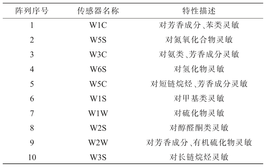 表1 电子鼻传感器性能描述