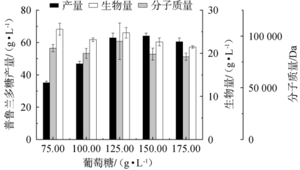图4 葡萄糖添加量对菌株UV013发酵产普鲁兰多糖的影响
