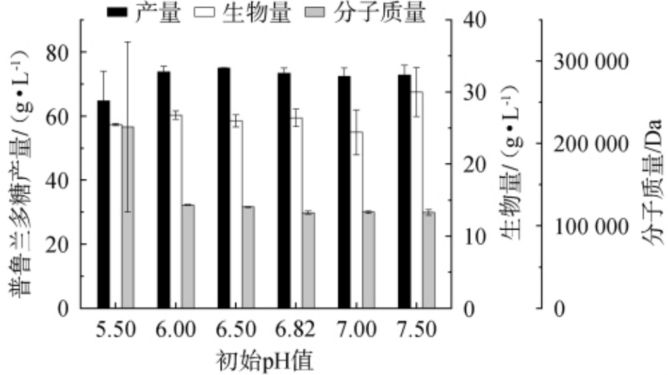 不同初始pH值对菌株UV013发酵产普鲁兰多糖的影响结果见图7。