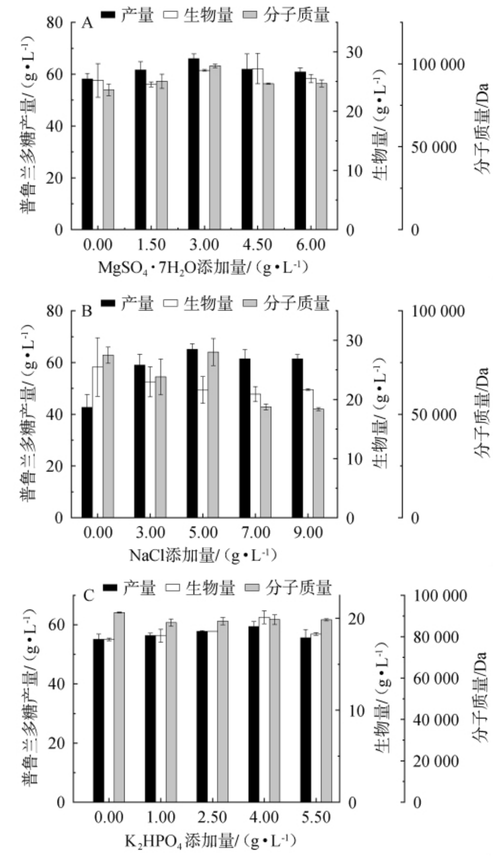 2.2.3 不同无机盐及添加量对菌株UV013发酵产普鲁兰多糖的影响