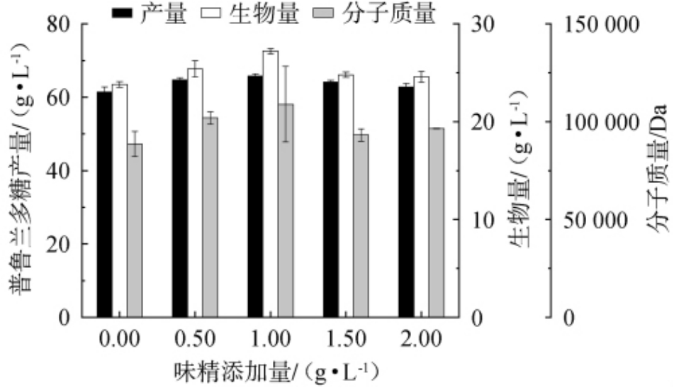 Fig. 6 Effect of monosodium glutamate addition on pullulan yield fermented by strain UV013