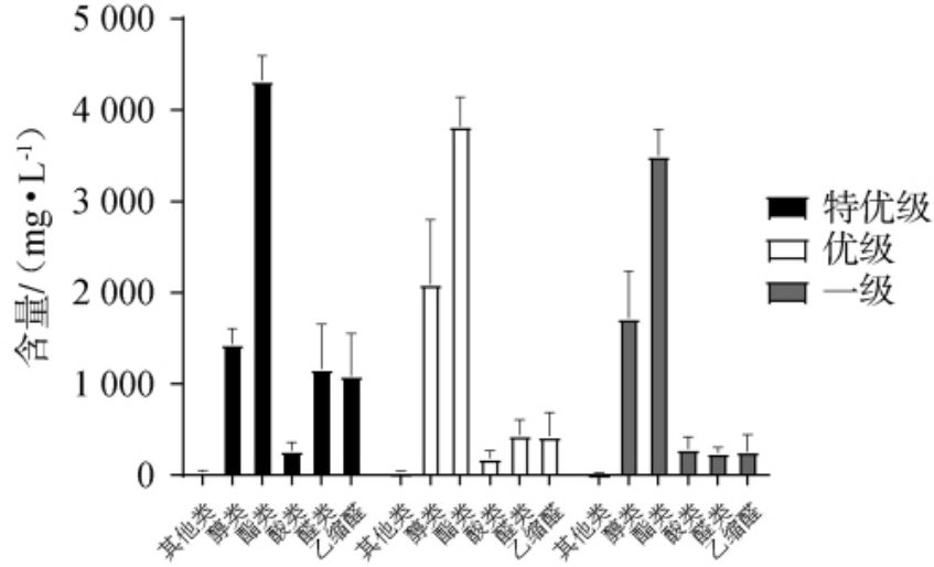 图3 不同质量等级基酒各类别挥发性风味物质含量