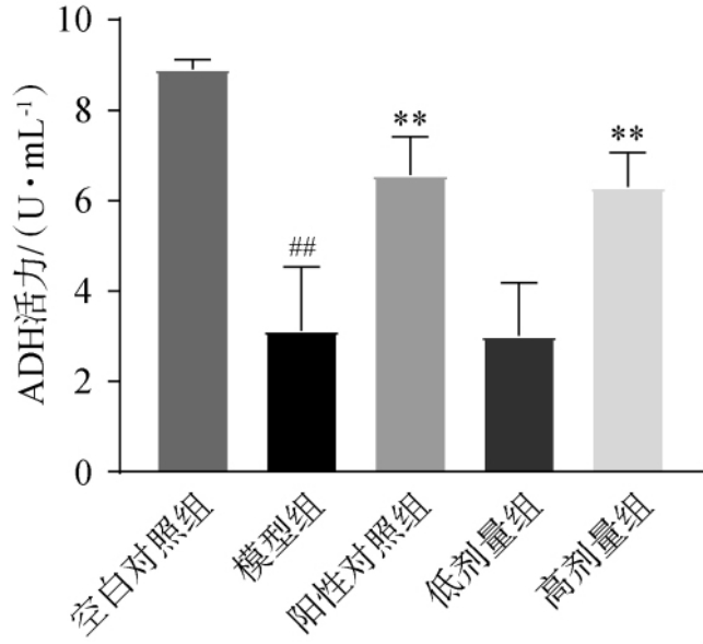 (4)小鼠肝脏ADH活性及血清生化指标测定