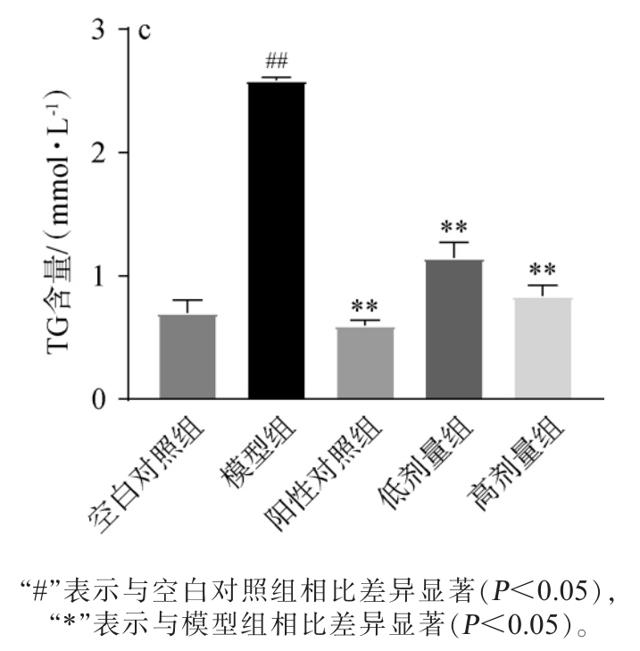 图5 混菌强化发酵红酸汤对小鼠肝脏超氧化物歧化酶(a)、丙二醛(b)和甘油三酯(c)含量的影响