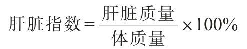 肝脏组织的采集及ADH活性测定:最后一天灌胃90min后,立即剖腹取出肝脏,使用生理盐水冲洗肝脏,并用滤纸吸干表面液体,精确称质量,计算肝脏指数,其计算公式如下: